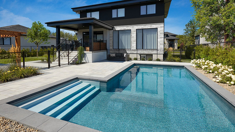 The Fuzion In-ground Pool, crafted from resin and concrete, seamlessly blends stability and durability. Engineered to withstand the most demanding climates, this modular self-supporting pool stands out for its exceptional strength and ability to be finished with pavers for a sophisticated style.